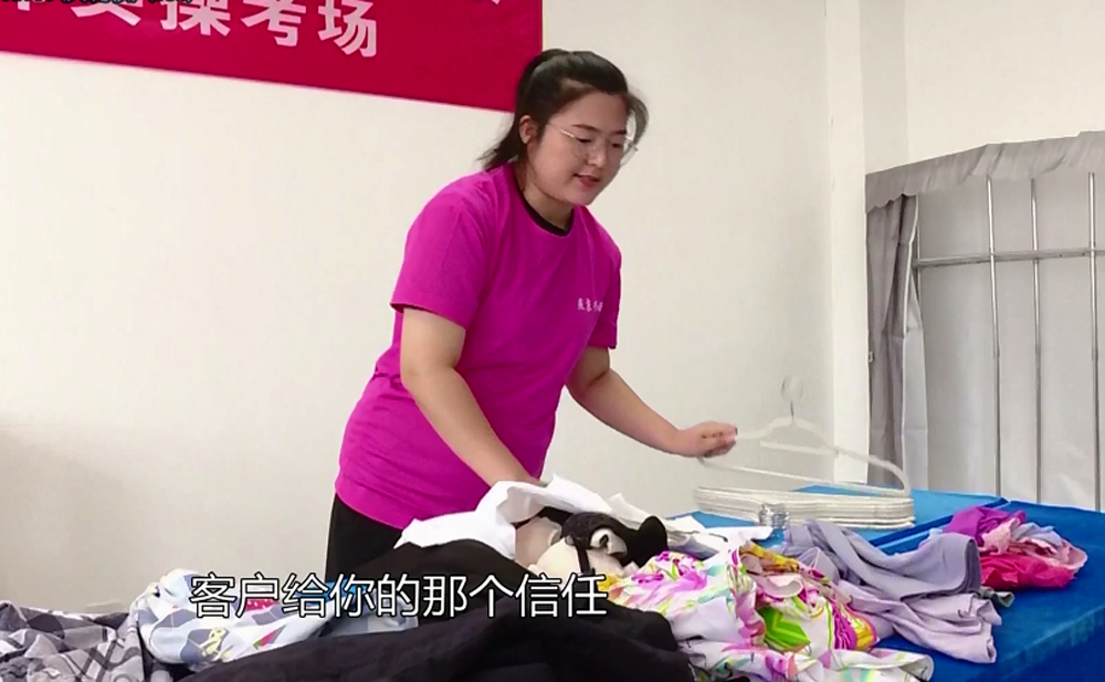這位利索收拾物品的參賽者是一位大學生,她說,自己是一本學校畢業的,剛剛開始從事收納師的工作,家人都非常不理解,不明白為什么大學生要去給人收拾屋子。而她卻覺得,自己拯救的是一個家的居家環境,客戶的肯定,就能讓自己獲得非常強的職業榮譽感。而這場技能大賽的舉辦,也是為了營造尊重勞動,尊重技能,尊重家政服務的氛圍。